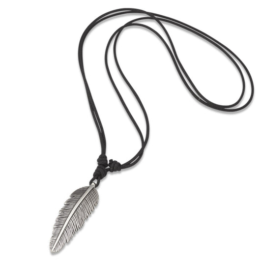 Halskæde med vedhæng Sølv, Tekstil patineret Fjer 40-80 cm