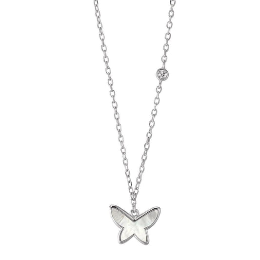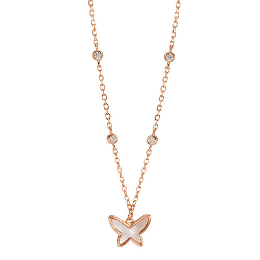 Collier Sølv Zirconia, [synth. Stein] rød rhodineret Perlemor sommerfugl 40-45 cm