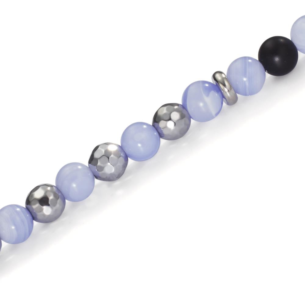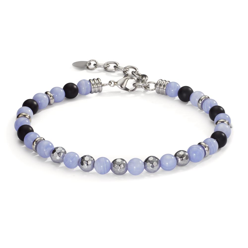 Stilfuldt herrearmbånd i rustfrit stål med ægte agat- og onyxperler. Kombinationen af blå og sorte sten giver et maskulint og tidløst look. Perfekt til både hverdag og fest. Justerbart med kæde og karabinlås for optimal pasform og komfort.