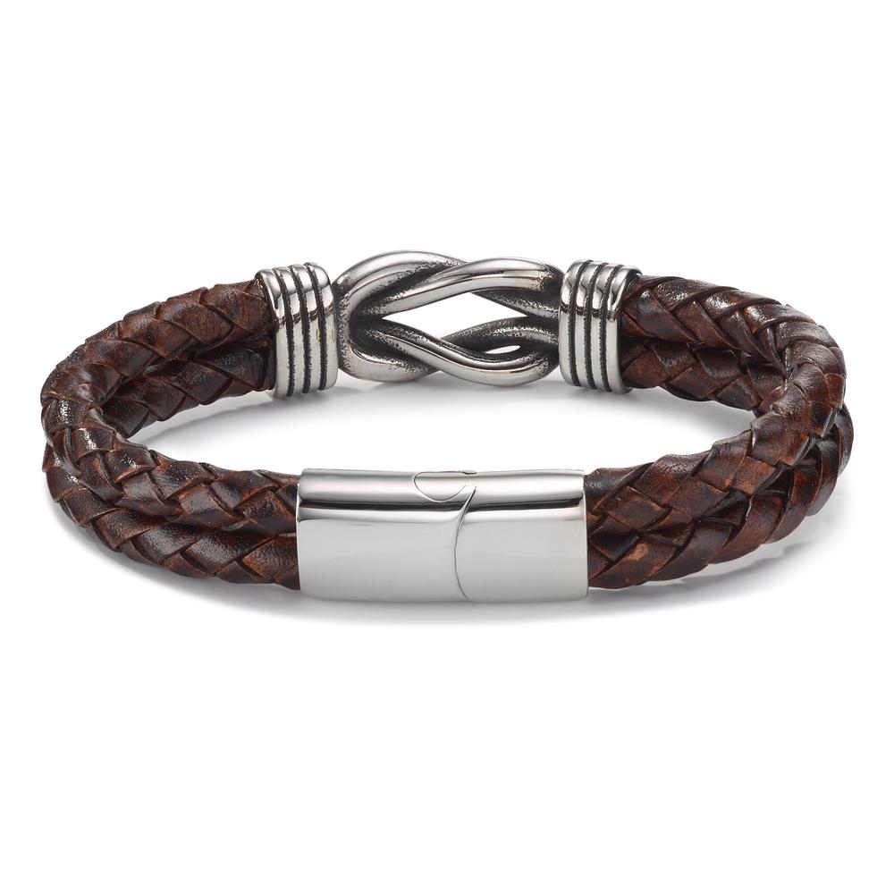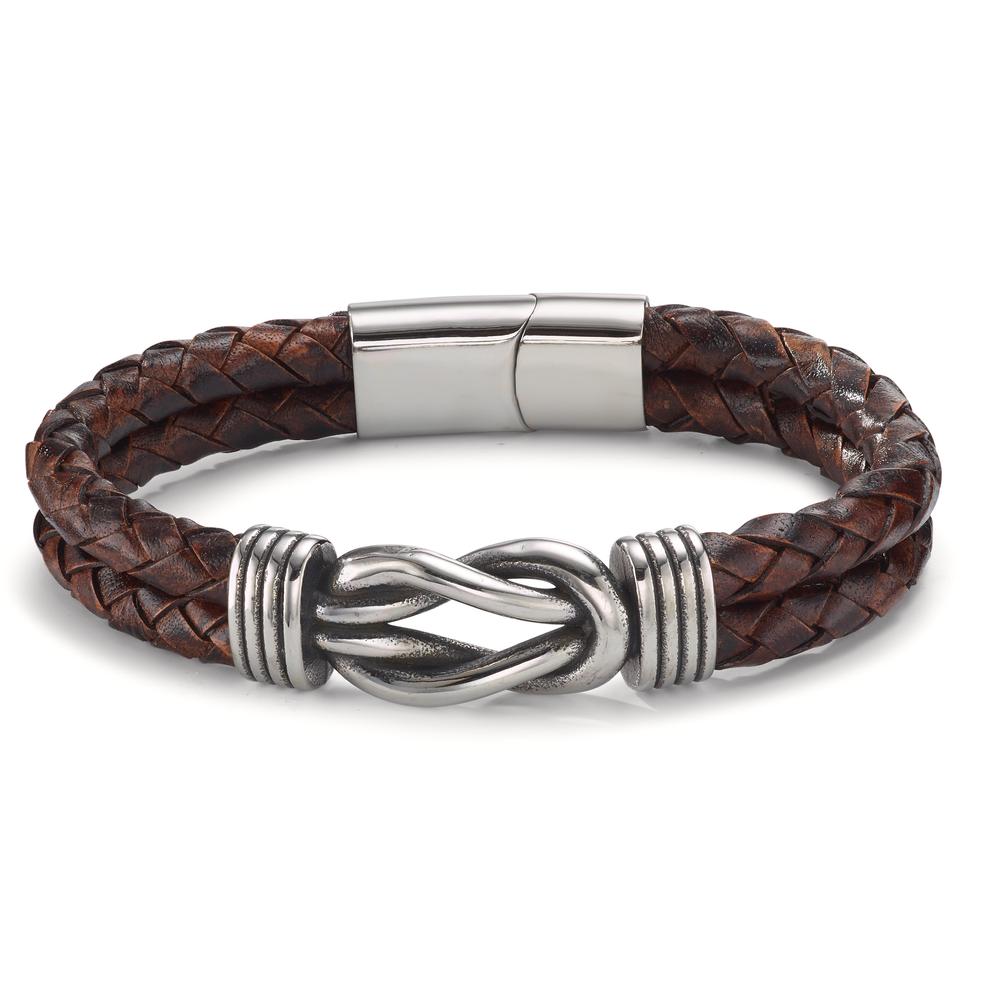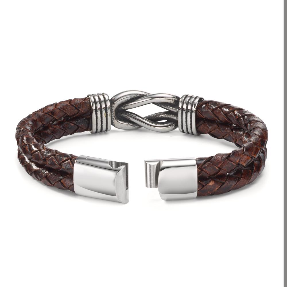 Armbånd Rustfrit stål, Læder patineret 21.5 cm