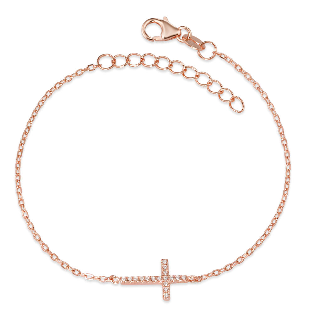 Armbånd Sølv Zirconia rose forgyldt Kryds 16-19 cm