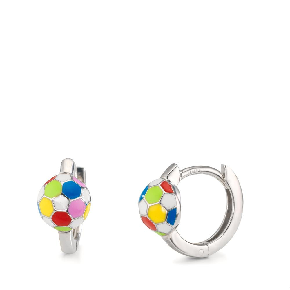 Søde børneklapcreoler i blankt sølv med farverige fodboldmotiver. Perfekte til små fodboldfans, der ønsker et unikt og legende smykke til hverdagsbrug. Lette at sætte i og behagelige at have på. Et flot accessory til både hverdag og fest.