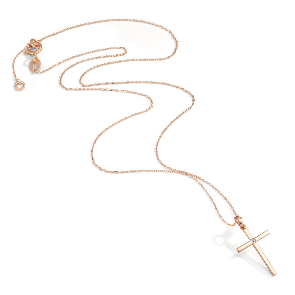 Collier 750/18K rødguld Diamant 0.01 ct, w-si Kryds 40-42 cm