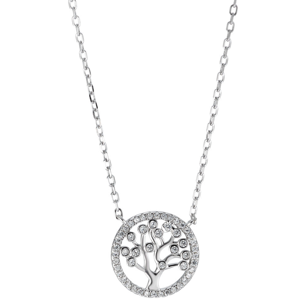 Elegant dames collar i ægte sølv med funklende zirkonia-sten. Vedhænget har et smukt livets træ-design, der symboliserer styrke og vækst. Perfekt som gave eller personlig accessory til enhver lejlighed. Et tidløst smykke, der skinner i al sin enkelhed.