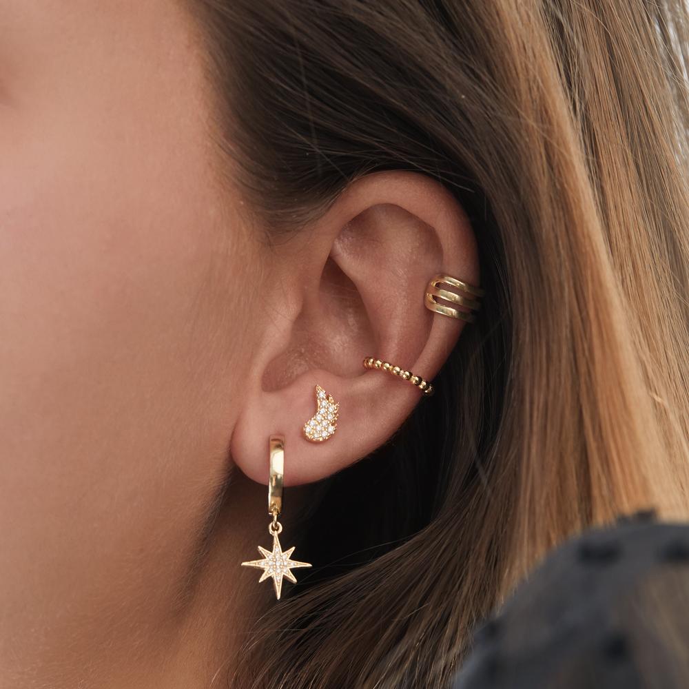 Elegant øreklemme i sølv til damer. Dette smykke har et moderne og tidløst design med tre parallelle bånd, der omslutter øret uden at kræve hul. Perfekt til at tilføje et strejf af sofistikation og stil til enhver outfit. Let og behagelig at bære hele dagen.