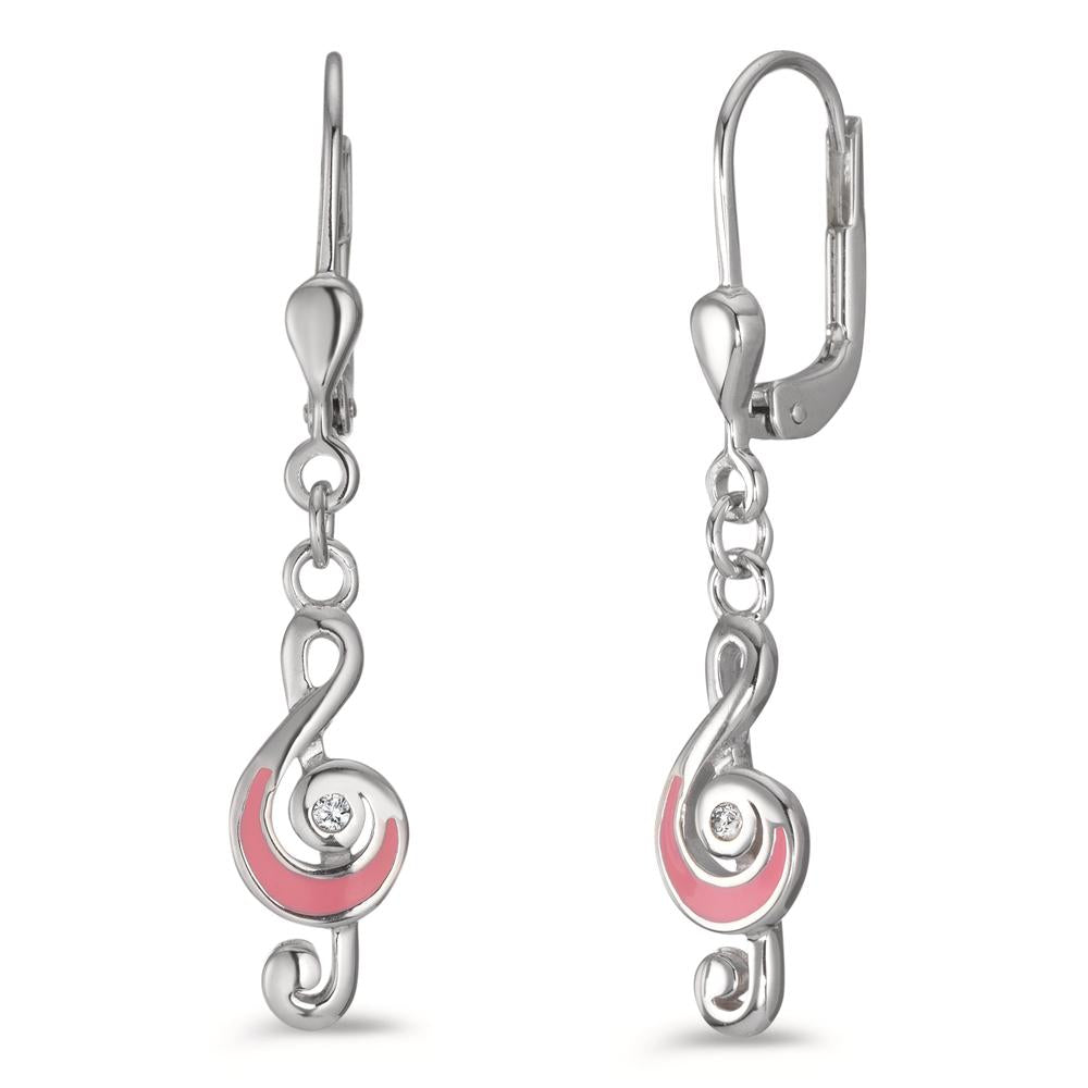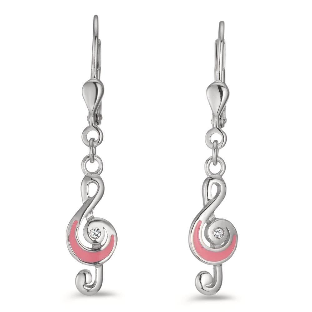 Fine øreringe til piger i sølv, designet som en nodelinie med smuk rosa emalje og glitrende zirkonia-sten. Perfekt til musikelskere, der ønsker et unikt og elegant smykke med legende detaljer. Letvægt og nemme at bære hver dag.