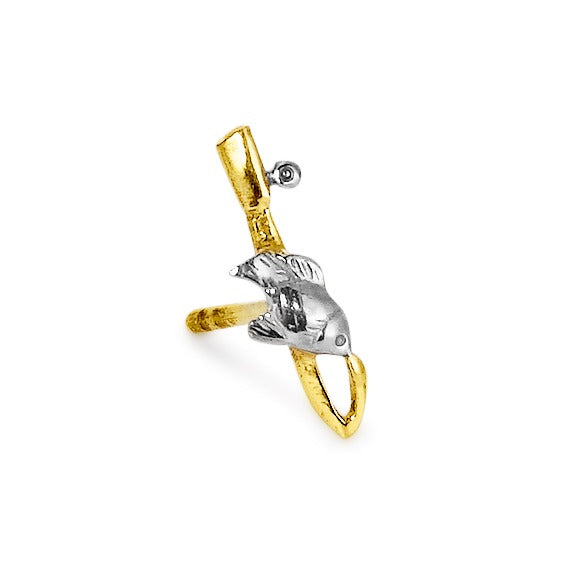 Herren Ohrstecker i 750 guldbelagt guld med et unikt fiskermotiv. Eksklusivt design, der kombinerer gult og hvidt guld for et maskulint og stilfuldt udtryk. Perfekt som gave eller til dig, der elsker natur og detaljer i smykker. Kun 1 stk. Tilføj personlighed til dit look!