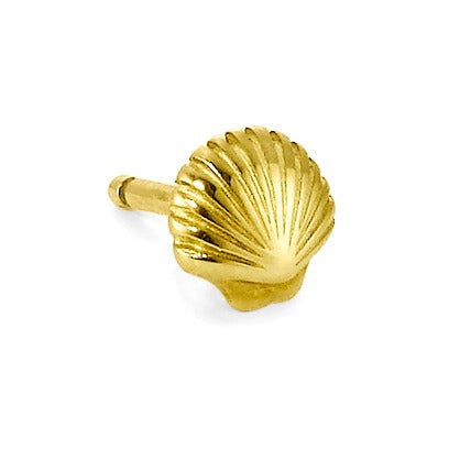 Elegant herreørering i 750 gult guld med et unikt muslingedesign. Denne enkeltstående ørestik kombinerer klassisk stil med et maritimt touch, perfekt til den moderne mand, der ønsker et subtilt men iøjnefaldende smykke. Et tidløst og eksklusivt tilbehør.