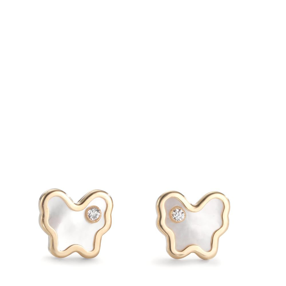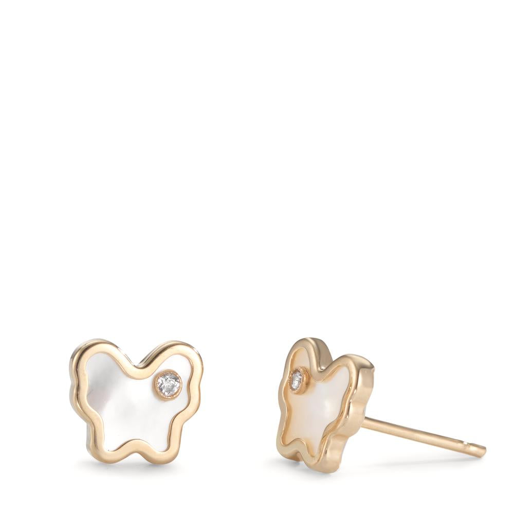 Ørestikker 375/9K guld Zirconia 2 Sten Perlemor hvid sommerfugl Ø6.5 mm