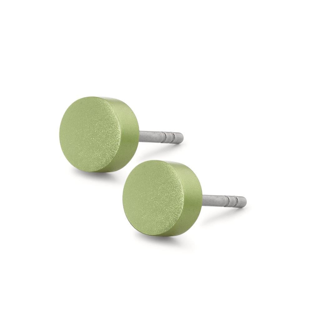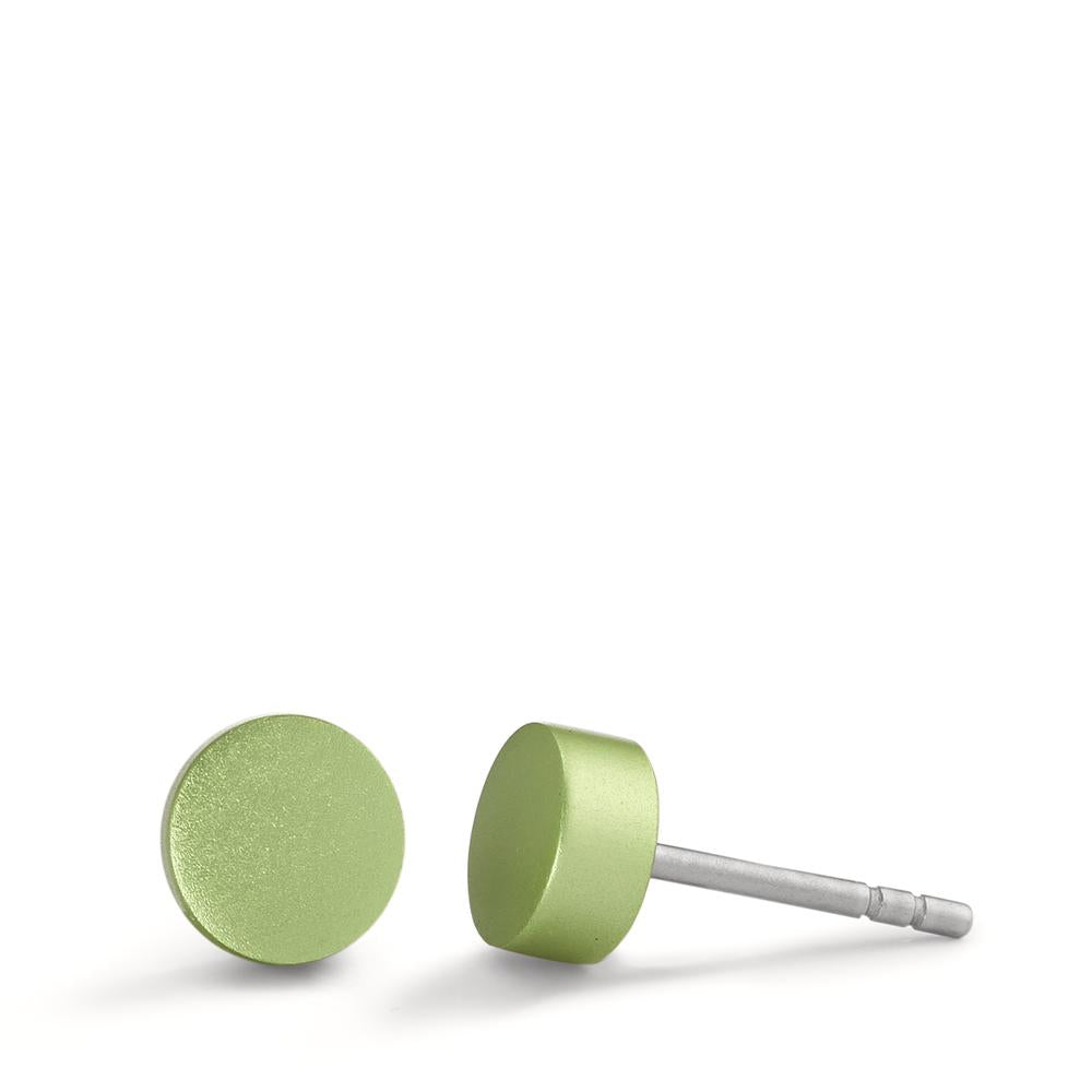 Smukke og minimalistiske øreringe til kvinder i rustfrit stål og aluminium. Den lette aluminiumsoverflade i frisk grøn farve giver et elegant og moderne udtryk, perfekt til både hverdag og fest. Holdbare, allergivenlige og behagelige at bære hele dagen.