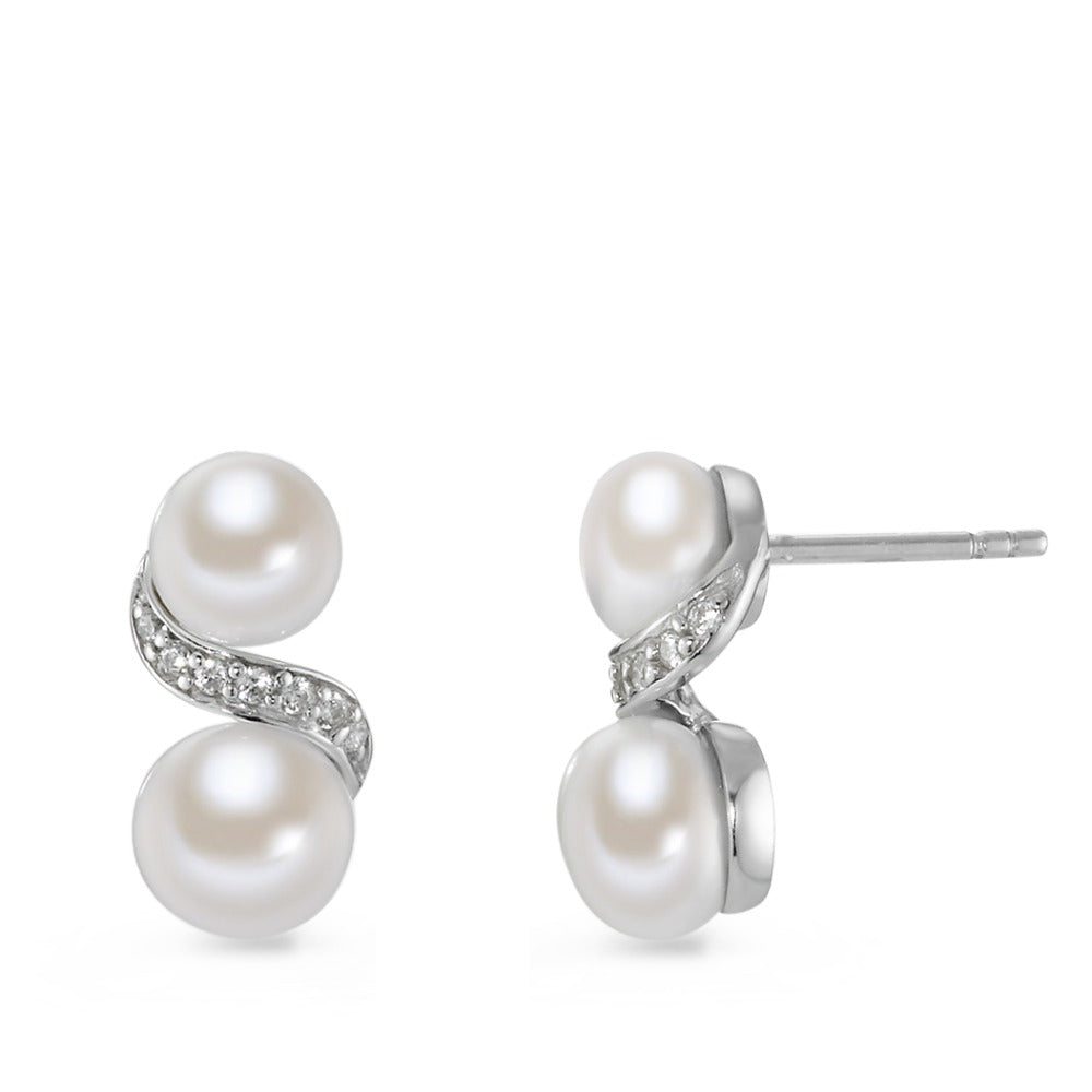 Ørestikker Sølv Zirconia rhodineret Ferskvands kulturperle hvid, 4 Perler