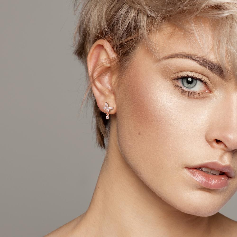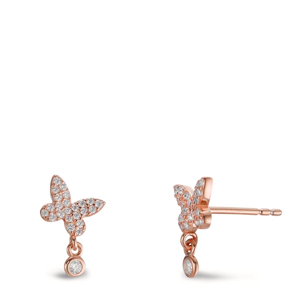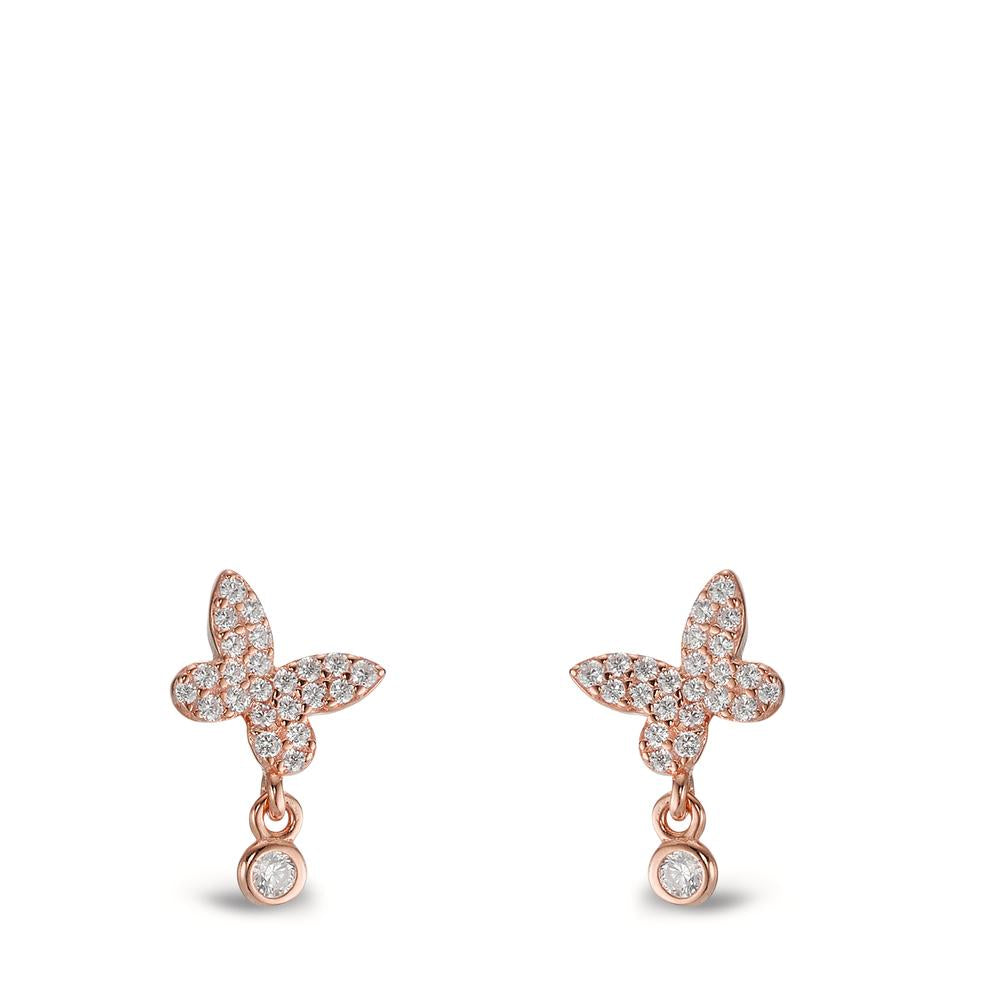 Ørestikker Sølv Zirconia rose forgyldt sommerfugl Ø7.5 mm