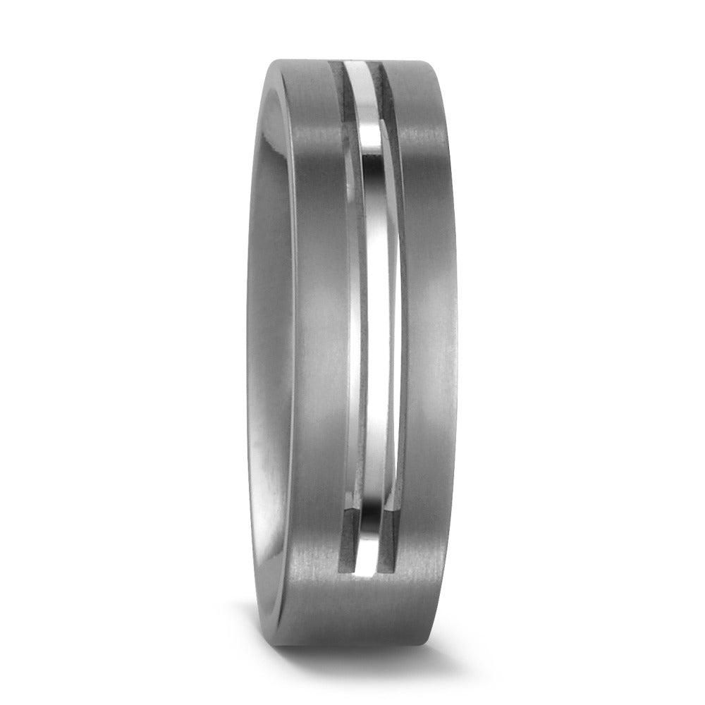 Denne partnering i titan er både robust og elegant. Den har en klassisk design, der passer til enhver lejlighed. Ringen har en glat overflade, der giver en behagelig pasform. Titan er et let materiale, der er velegnet til daglig brug og holder sig smuk i mange år. Vælg denne ring som et symbol på dit bånd.
