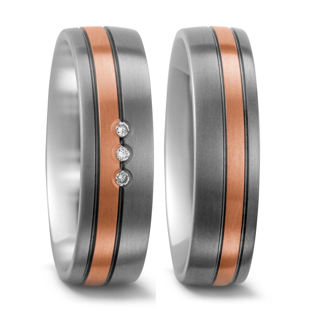 Partnerringe Titanium, 750/18K rødguld Diamant hvid , 0.03 ct, 3 Sten , w-si