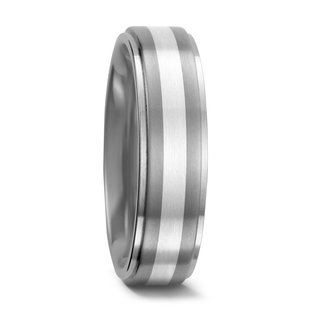 Elegant og moderne partnering i holdbart titanium med en stilfuld sølvstribe i midten. Perfekt til par, der ønsker et tidløst symbol på deres kærlighed. Ringen kombinerer styrke og lethed, hvilket sikrer komfort hele dagen. Et diskret, men betydningsfuldt smykke til enhver lejlighed.