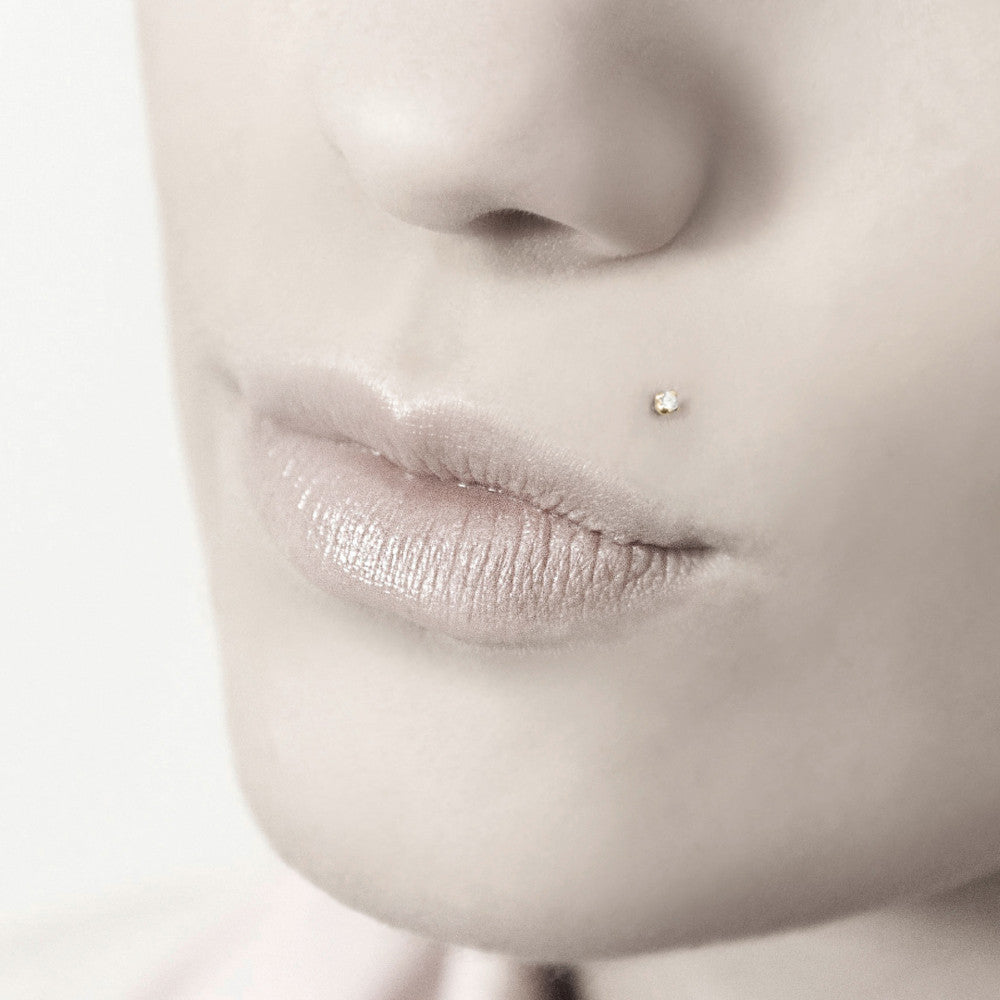Elegant dame ørepiercing i 750 guldbelagt guld med en funklende zirkonia sten. Perfekt til daglig brug eller til at tilføje et glimt af luksus til ethvert outfit. Komfortabel silikonebagside sikrer nem og sikker pasform hele dagen.