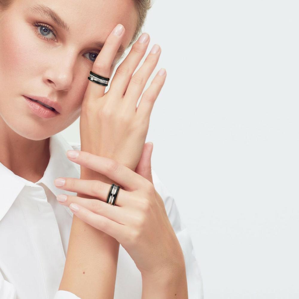 Eksklusivt damesæt med ringe i en unik kombination af sort og hvidt metal. Den ene ring prydes af en række funklende diamanter, mens den anden har en central diamant, der tilføjer ekstra elegance. Perfekt til særlige lejligheder eller som gave.