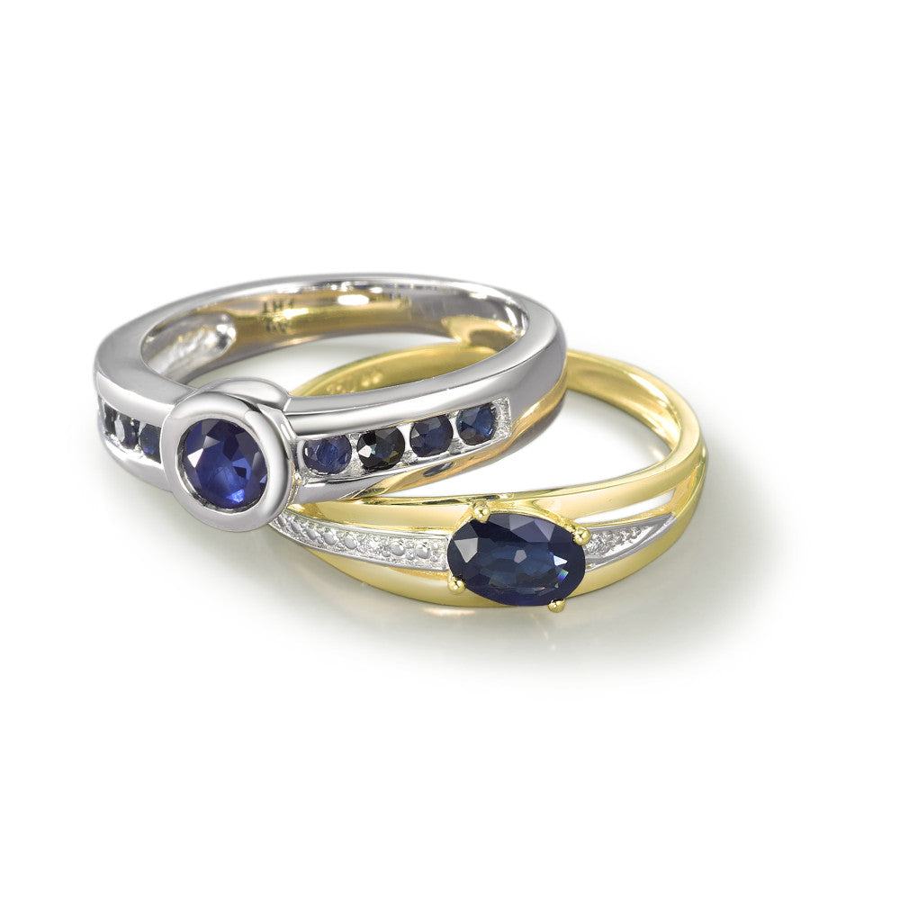 Ringe 750/18K guld Safir blå , [oval], Diamant hvid , 0.01 ct