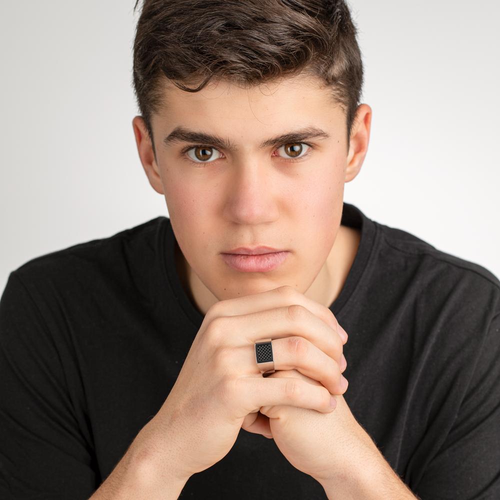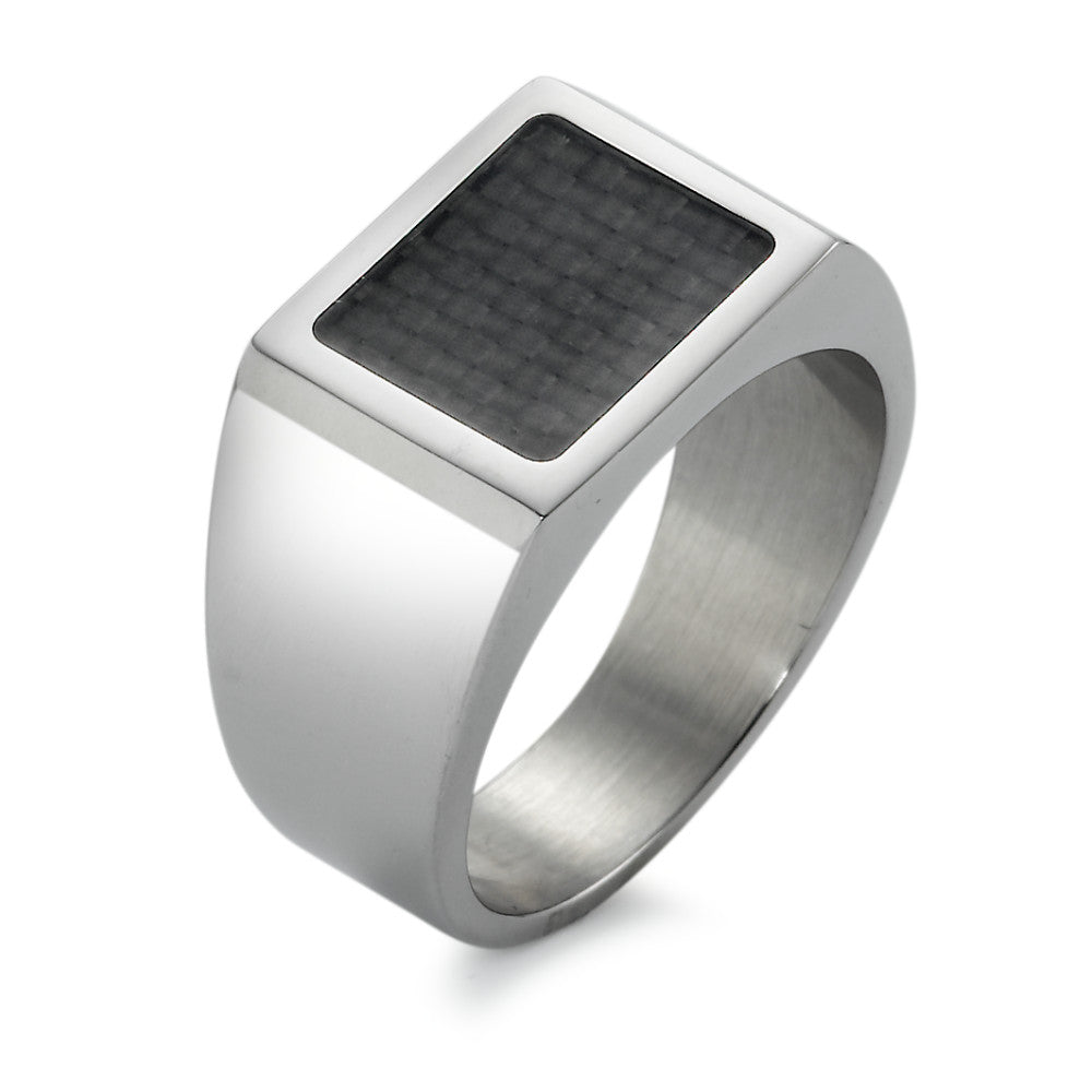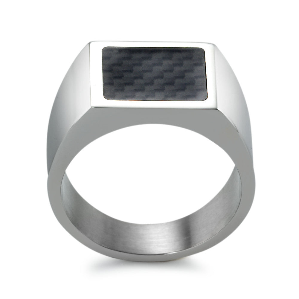 Maskulin herre ring i slidstærkt rustfrit stål med stilfuld carbon detalje på toppen. Denne moderne og robuste fingerring kombinerer holdbarhed med et råt, industrielt look. Perfekt til daglig brug eller som en markant accessory til enhver lejlighed.