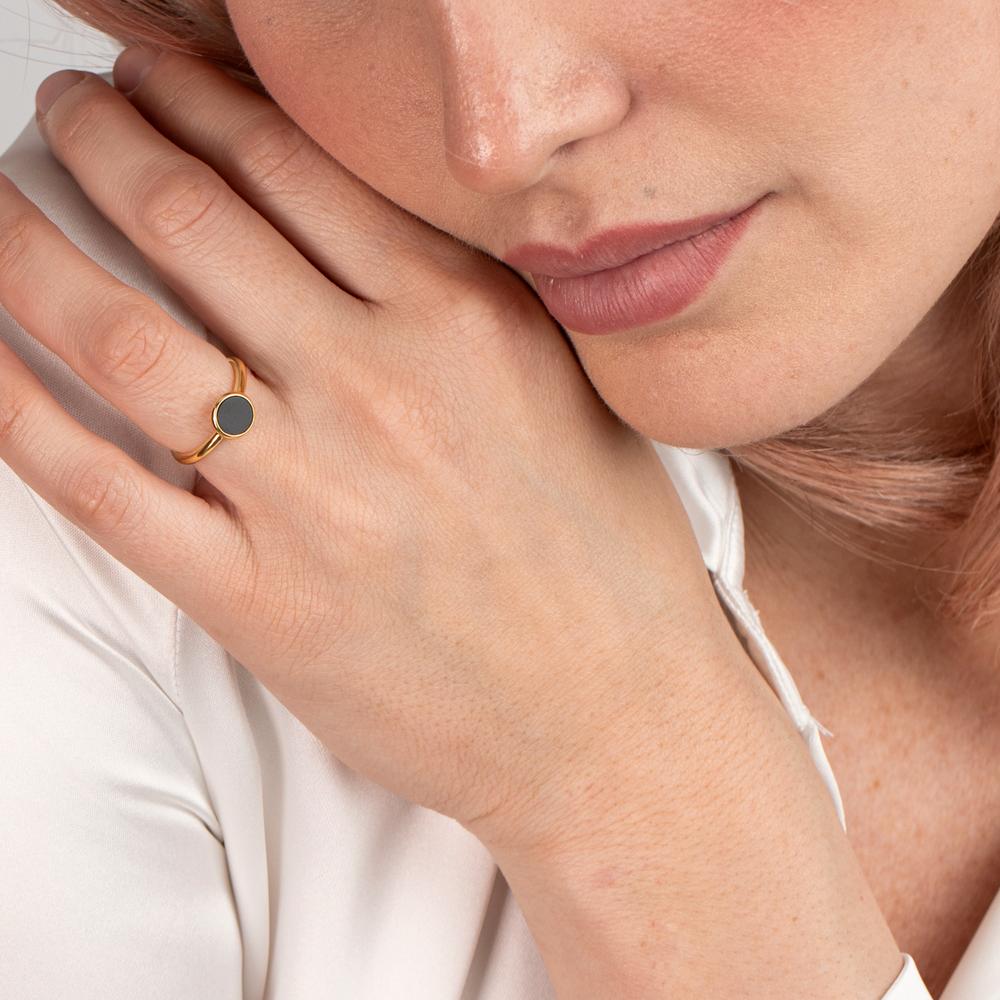Elegant dame fingerring i forgyldt sølv med en smuk sort onyxsten. Den tidløse og enkle design gør den perfekt til både hverdagsbrug og særlige lejligheder. En stilfuld detalje, der fremhæver din personlighed og tilføjer et strejf af luksus.