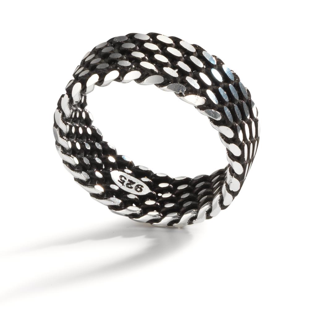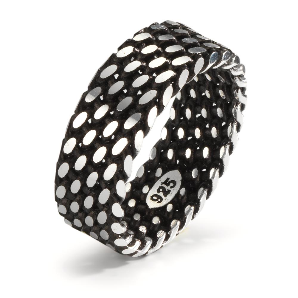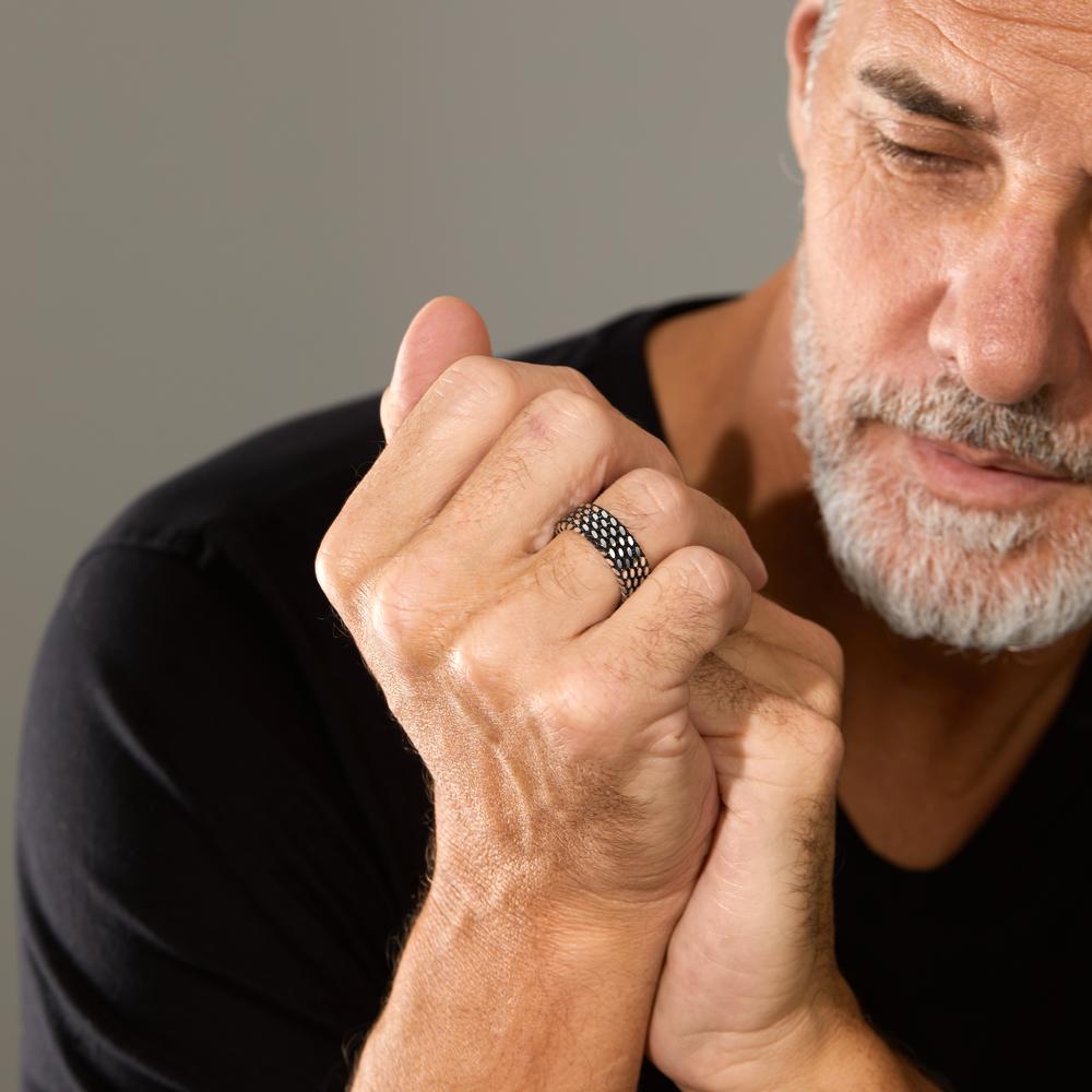 Stilfuld herre fingerring i ægte sølv (925 sterling). Ringen har et unikt mønster med perforerede ovaler, der giver en rå og moderne look. Perfekt til enhver anledning og let at kombinere med andre smykker. Holdbar, behagelig at bære og et must-have accessory til den modebevidste mand.