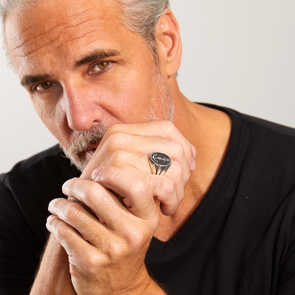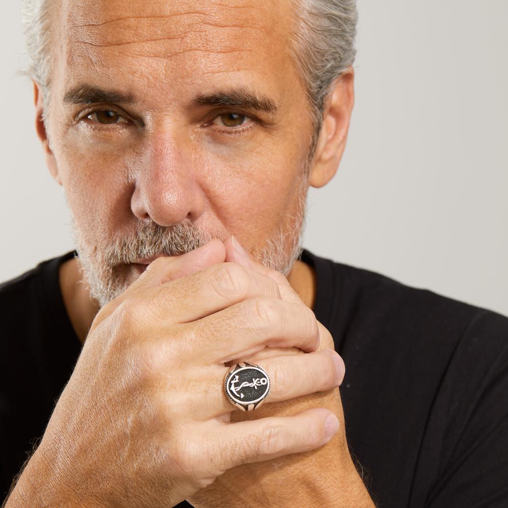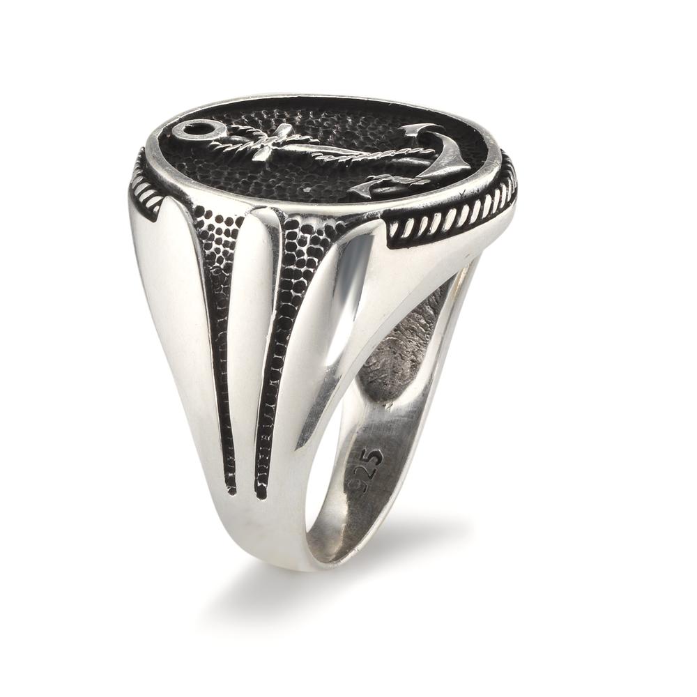 Maskulin sølvring med et maritimt ankerdesign. Fremstillet i sterling sølv 925, der sikrer holdbarhed og stil. Perfekt til hverdagsbrug eller som et statement piece, der symboliserer styrke og stabilitet. En tidløs accessory til den moderne mand.