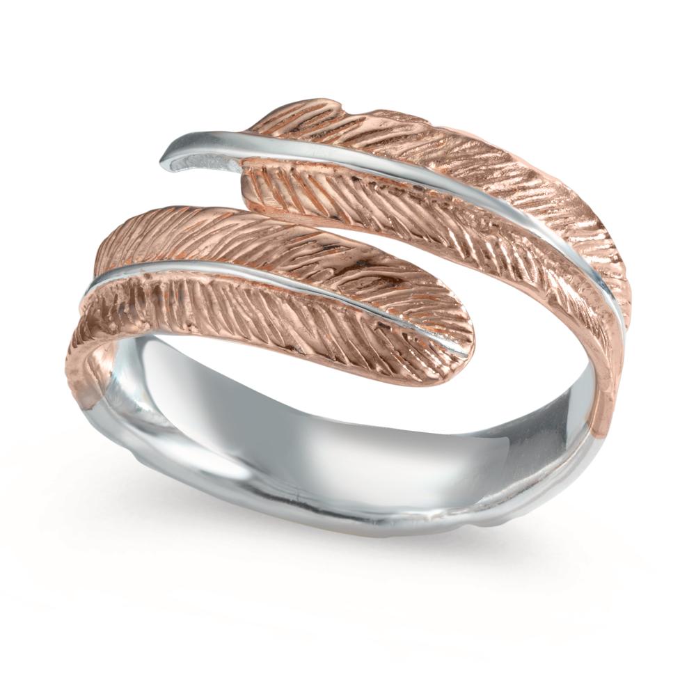 Smuk og elegant damesring i sølv med fine, detaljerede fjer. Den unikke kombination af sølv og rosaguldsfarvet fjer skaber et let og feminint udtryk, perfekt til enhver lejlighed. Justerbar størrelse for optimal pasform og komfort. Et tidløst smykke til din samling.