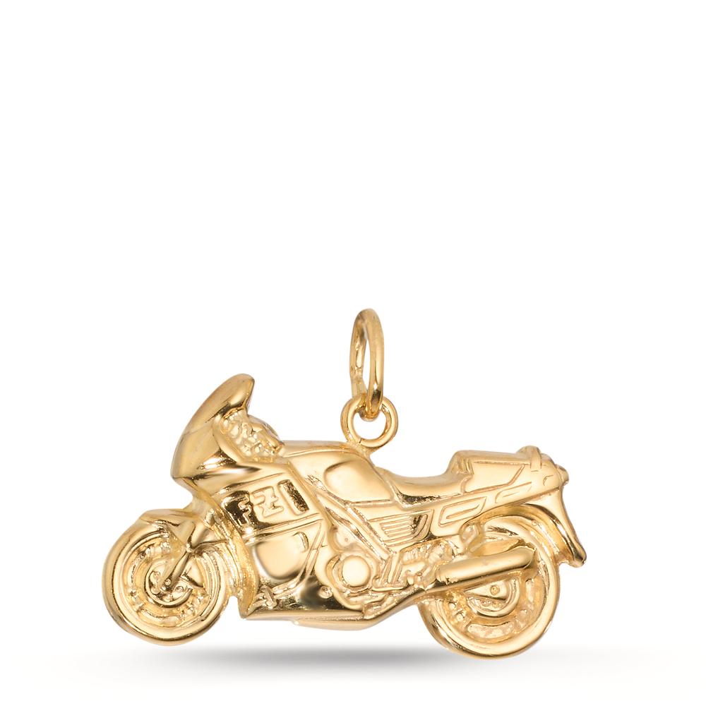 Herrer vedhæng i elegant 375 guldbelagt design, formet som et detaljeret motorcykelmotiv. Perfekt til motorcykelentusiaster, der ønsker at bære deres passion tæt på hjertet med stil og kvalitet. Et unikt smykke til hverdagsbrug eller som gave.