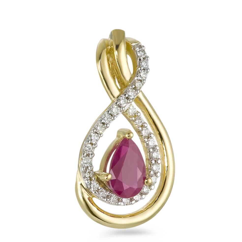 Vedhæng 750/18K guld Rubin rød , [Tropfen], Diamant 0.13 ct, w-si