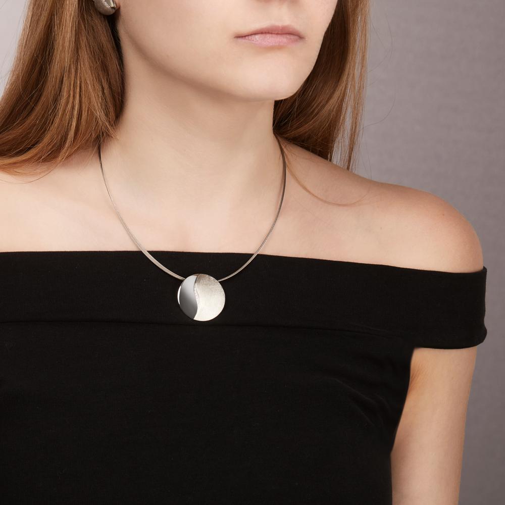Smuk damesmykke i rustfrit stål med en elegant kombination af mat og blank overflade. Ved skillelinjen glitrer fine zirkonia-sten, der tilføjer et sofistikeret touch. Perfekt som en tidløs og stilfuld gave eller til at fuldende ethvert outfit.