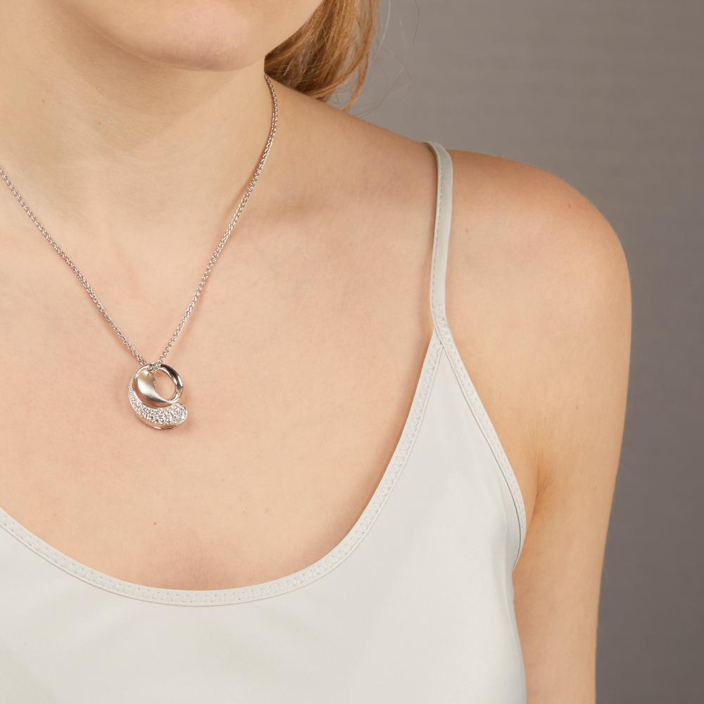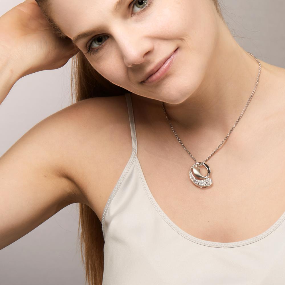Elegant damemedaljon i sølv med funklende zirkonia-sten. Det moderne og unikke design gør dette smykke til et perfekt valg til enhver lejlighed. Et smukt og tidløst tilbehør, der tilføjer lidt ekstra gnist til din stil.